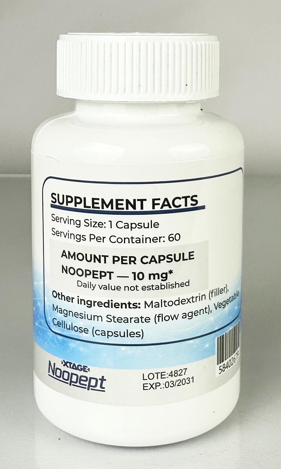 Este producto contiene 10 mg de Noopept por cápsula, lo que permite una dosificación uniforme y una administración práctica dentro de la rutina personal de quienes utilizan suplementos nootrópicos. La presentación en cápsulas facilita su consumo y permite integrarlo fácilmente dentro de esquemas personales de suplementación.
